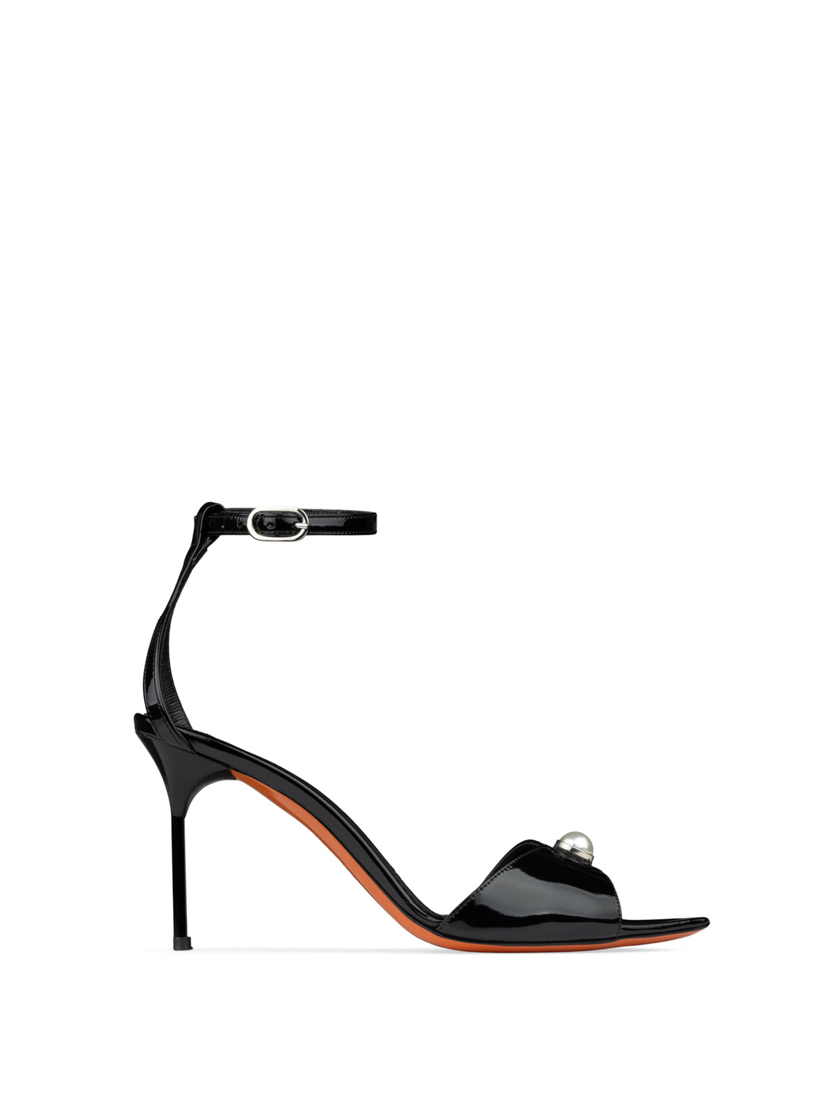 A statement piece for the discerning woman — this exquisite shoe features a nail-style metal heel, a luxurious patent leather upper adorned with a delicate pearl detail, and a gel insole for all-day comfort. Every pair is fully handcrafted in Italy, reflecting the finest artisanal tradition.
